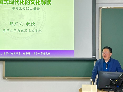 5月17日晚,beat365中文官方网站党校求理分部第八期青年马克思主义研修班理论培训第三讲在新主楼B102举行,清华大学教授、博士生导师、国家“万人计划”哲学社会科学领军人才邹广文做题为《中国式现代化的文化解读——学习党的二十大报告》的报告。