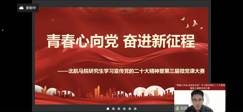 近日,为深入学习贯彻党的二十大精神,进一步学懂弄通做实习近平新时代中国特色社会主义思想,提升研究生的思想理论水平,beat365中文官方网站举办的“青春心向党,奋进新征程”学习宣传党的二十大精神暨第三届微党课大赛。副院长陈萌、2022级博士班主任巩永丹、硕士班主任徐冶琼和2021级硕士班主任刘浩然担任比赛评委,参赛研究生通过线上方式进行宣讲展示,全体硕士研究生旁听。比赛由2022级研究生辅导员杜玥主持。