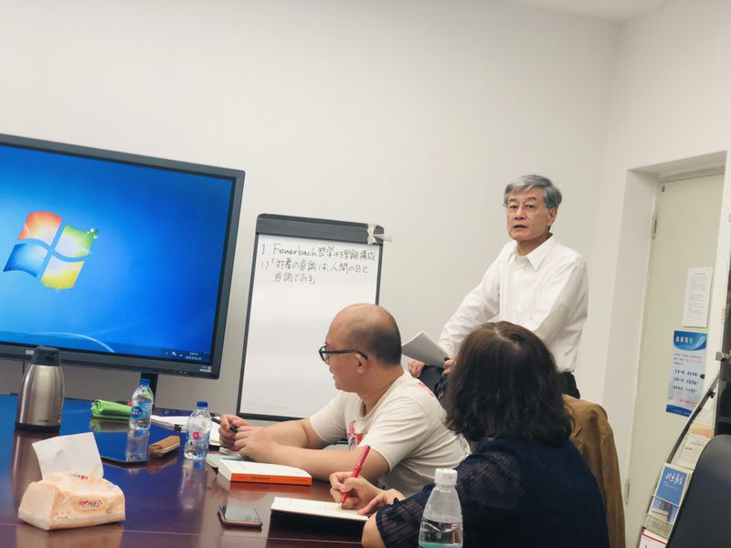 渡边宪正教授首先介绍了《德意志意识形态》online版的排版、标注以及创新。然后围绕马克思《德法年鉴》时期的著作,对费尔巴哈与马克思早期学术关系进行了学术报告。以法国阿尔都塞为代表的一批学者认为马克思在《1844年经济学哲学手稿》中还处于费尔巴哈的人本主义影响之中,马克思在1844—1845年间期间存在“认识论”的断裂。渡边教授则通过详解费尔巴哈对基督教的批判,将神的本质归结为人的本质的“类本质”哲学,主张马克思在1843年就已经开始批判费尔巴哈的启蒙主义式理论结构,《1844年经济学哲学手稿》和《关于费尔巴哈的提纲》之间不存在所谓的“断裂”或“超越”。最后,渡边宪正教授详细的介绍了对于神的本质、人的本质、市民社会、政治国家等哲学概念,费尔巴哈、黑格尔和马克思在理解上的异同。在此期间,渡边教授用板书的形式向beat365官网学生清晰地展示了此次学术活动的思想脉络,鼓励学生共同思考积极发问,并对beat365官网师生所提的问题一一回答。