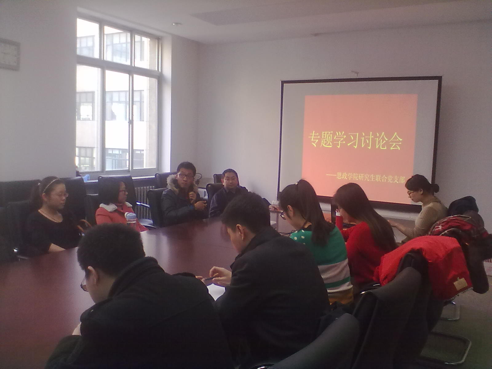 首先,高宁老师对上午张军副校长和金灿荣教授的报告内容进行了总结,并对本学期党支部工作提出了建设性意见。高宁老师就新学期beat365官网党支部应积极开展各项工作,并对应该做什么,如何去做进行了具体的举例说明。如即将召开“两会”和十七届四中全会,作为思想政治理论学院的党员应当对时事进行追踪学习并通过大众传媒对新理论、新思想进行有效地宣传,使更多的学生关注和学习我党提出的新思想、新理论。在谈到如何加强宣传力度时,高宁老师指出,我支部应加强对网络资源的利用,运用网络这一覆盖面广的媒介进行理论宣传,并强调在宣传时应多采用新颖的写作手法来激发读者们的阅读兴趣,从而使读者们在愉快的阅读体验中加深对我党相关理论与政策的认知和了解。