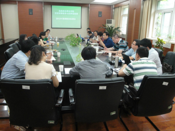 为及时总结交流《思想道德修养与法律基础》课程(以下简称《基础课》)教方法与经验,帮助授课教师及时掌握新教材的修订情况,增强《基础课》教学的实效性,2013年7月9日上午,《基础课》2013年集体备课会召开。会议由课程负责人郁树廷主持,校党委副书记程基伟、校本科教学督导组副组长郑彦良、思想政治理论学院领导姚小玲、赵义良和全体专兼职教师参加了会议。