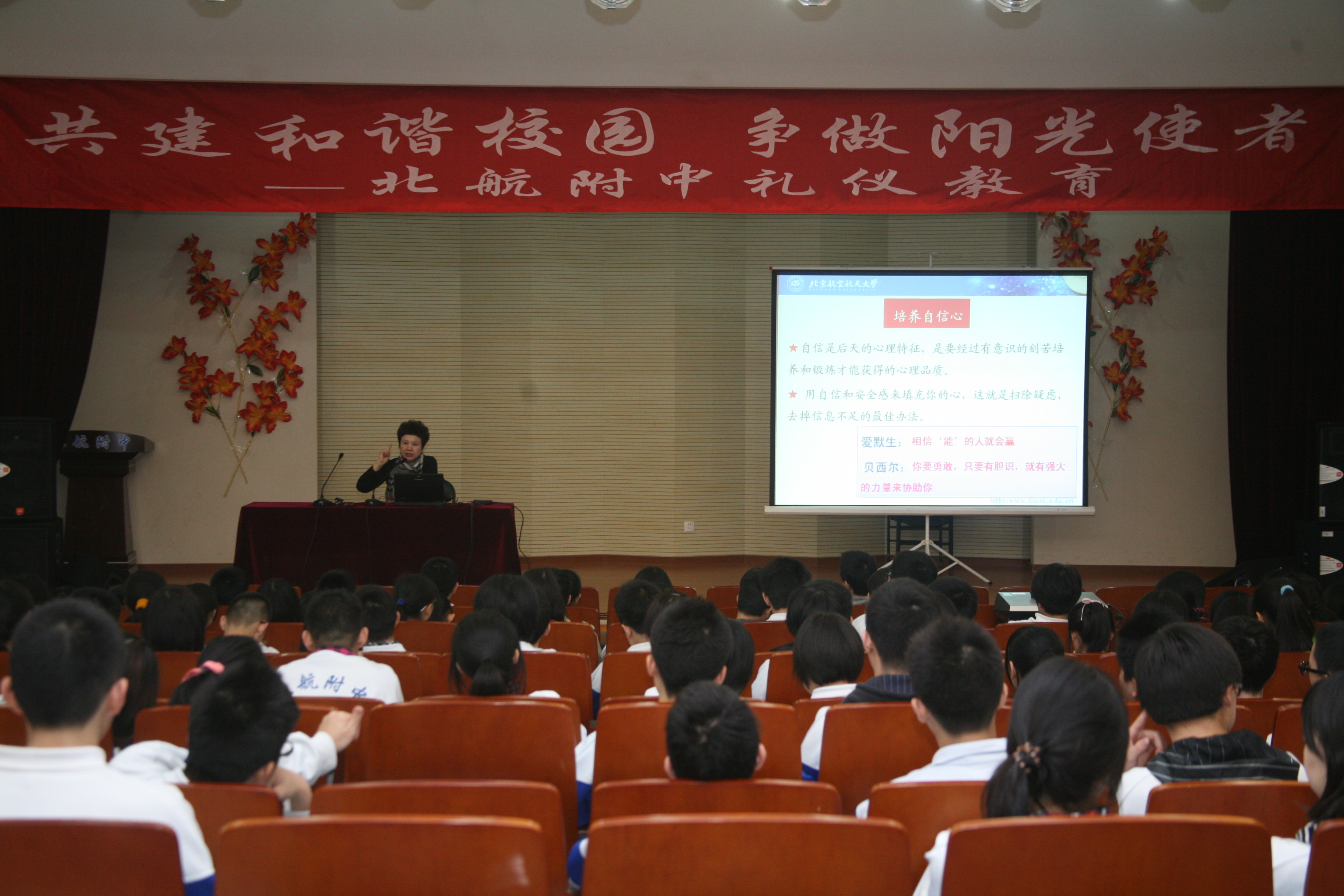 3月14日,在北航附中文明礼仪教育活动月之际,beat365官网姚小玲教授应邀来到附中,为同学们带来了一堂题为“演讲与口才”的礼仪教育课程。
