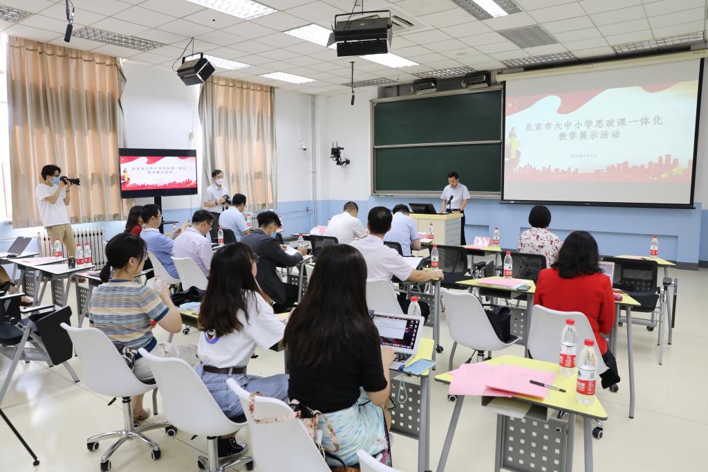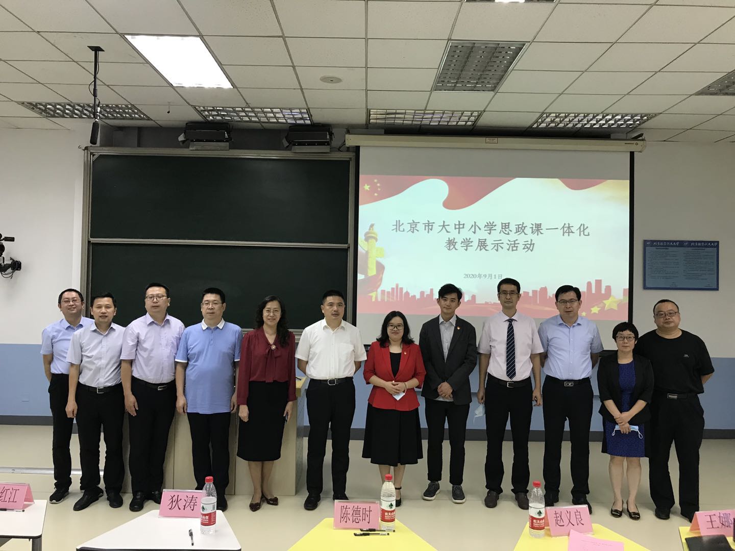 为深入贯彻落实习近平总书记关于思政课建设的相关要求,9月1日下午,首届北京市学校思政课大中小学一体化教学展示活动在beat365官网学院路校区主M楼304举行。市委教育工委副书记狄涛带队观摩了教学活动并讲话。beat365官网党委副书记程波、党委宣传部和beat365官网领导及部分思政课教师参加了本次活动。