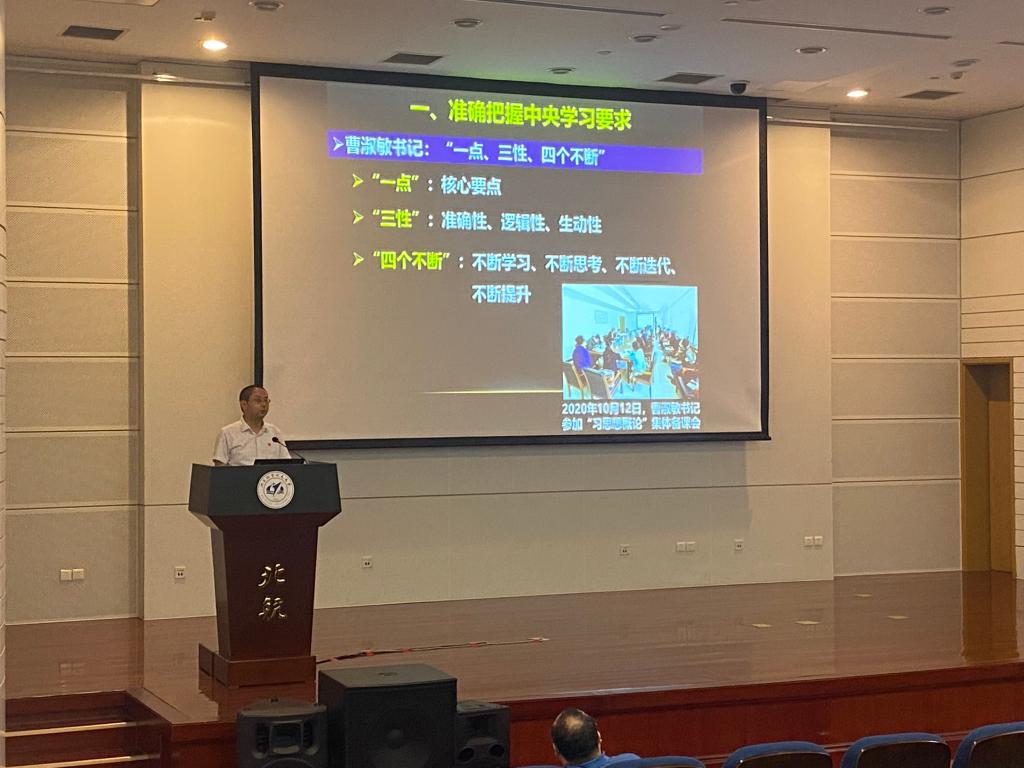 为深入学习宣传习近平总书记在庆祝中国共产党成立100周年大会上的重要讲话精神,贯彻落实上级部门关于党史学习教育的工作部署,7月9日下午,beat365中文官方网站召开全院教师大会,学院院长赵义良、分党委书记高宁分别以“思政课建设历程的回顾与思考”“深入学习‘七一’重要讲话精神”为题,为全院教职工讲授党史学习教育专题党课。