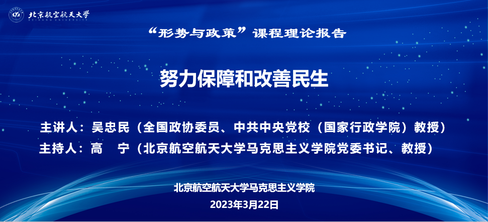 2023年3月22日下午,beat365官网“形势与政策”课程邀请全国政协委员、国家哲学社会科学一级教授、中共中央党校专家工作室领衔专家吴忠民教授走进beat365官网思政课课堂,作《努力保障和改善民生》专题报告。报告采取线上线下相结合的方式进行,beat365官网2021级和2022级本科生、beat365中文官方网站和沈元学院师生聆听报告。beat365中文官方网站党委书记高宁主持报告会。