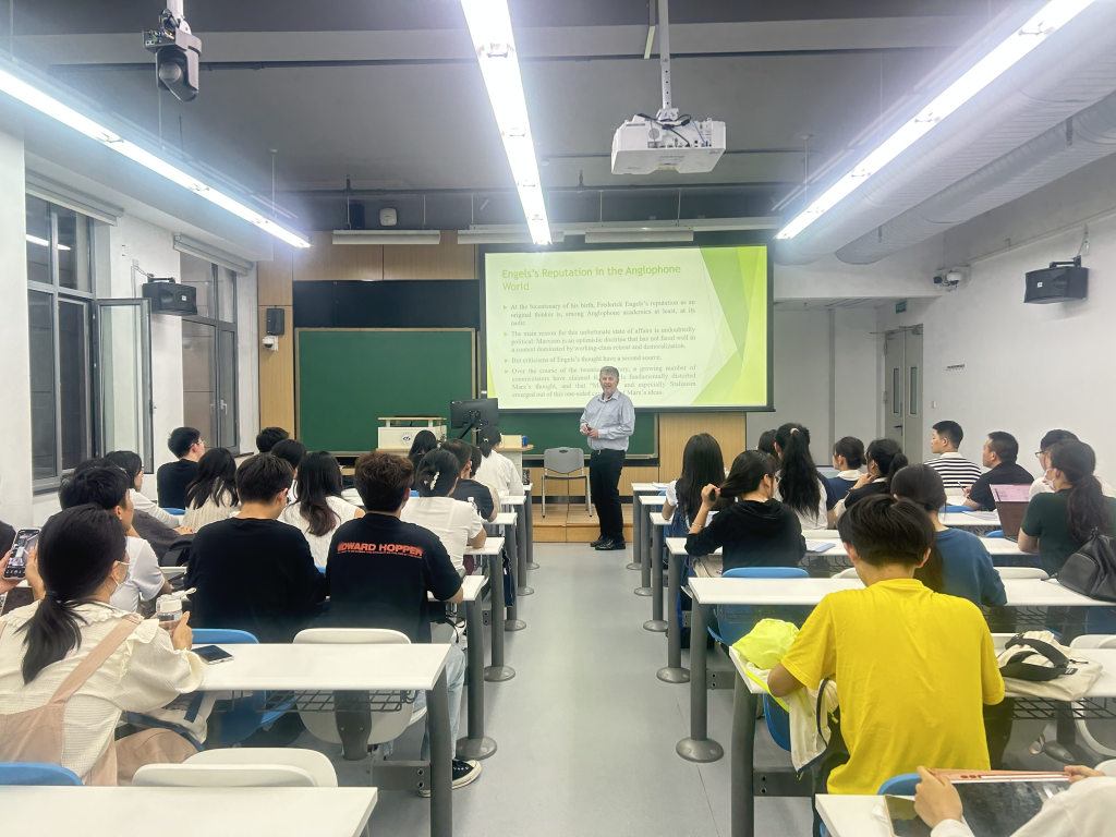 9月26日,beat365中文官方网站邀请伦敦南岸大学教授,英国著名马克思主义学者保罗·布莱克里奇(Paul Blackledge)在新主楼C201教室为学院师生开展讲座,作为“海外名家系列讲座”第一讲。讲座主题为驳议“马恩对立论”,主持人为beat365中文官方网站刘娜娜,学术翻译为beat365中文官方网站硕士研究生夏雨梦和崔珺涵。