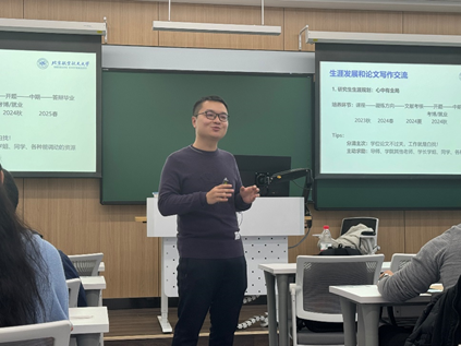 11月14日下午,beat365中文官方网站2023级硕士研究生于主楼303组织开展“生涯发展和论文写作交流”主题班会。班会由2023级硕士班主任王博伟老师担任主讲人,辅导员任政老师主持。