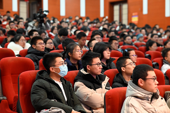 戚发轫院士带领同学们回顾了我国航天事业的发展历程,了解了中国航天事业的艰辛探索和突出成就。在一穷二白且面临技术封锁的严峻形势下,航天人咬紧牙关,坚持自主研发,攻克技术难关,形成了“自力更生、艰苦奋斗、大力协同、无私奉献、严谨务实、勇于攀登”的航天精神。戚发轫院士结合自己服务国家重大战略需求,数次转变研究方向的人生经历指出,“‘两弹一星精神’的核心是爱国。一个人只有有了爱,才会把最宝贵的东西奉献出来,而最大的爱、最崇高的爱,就是爱国家、爱事业、爱团队、爱岗位。”戚发轫院士深厚的爱国情怀,引发同学们的情感共鸣,爱国是人世间最深沉、最持久的情感。