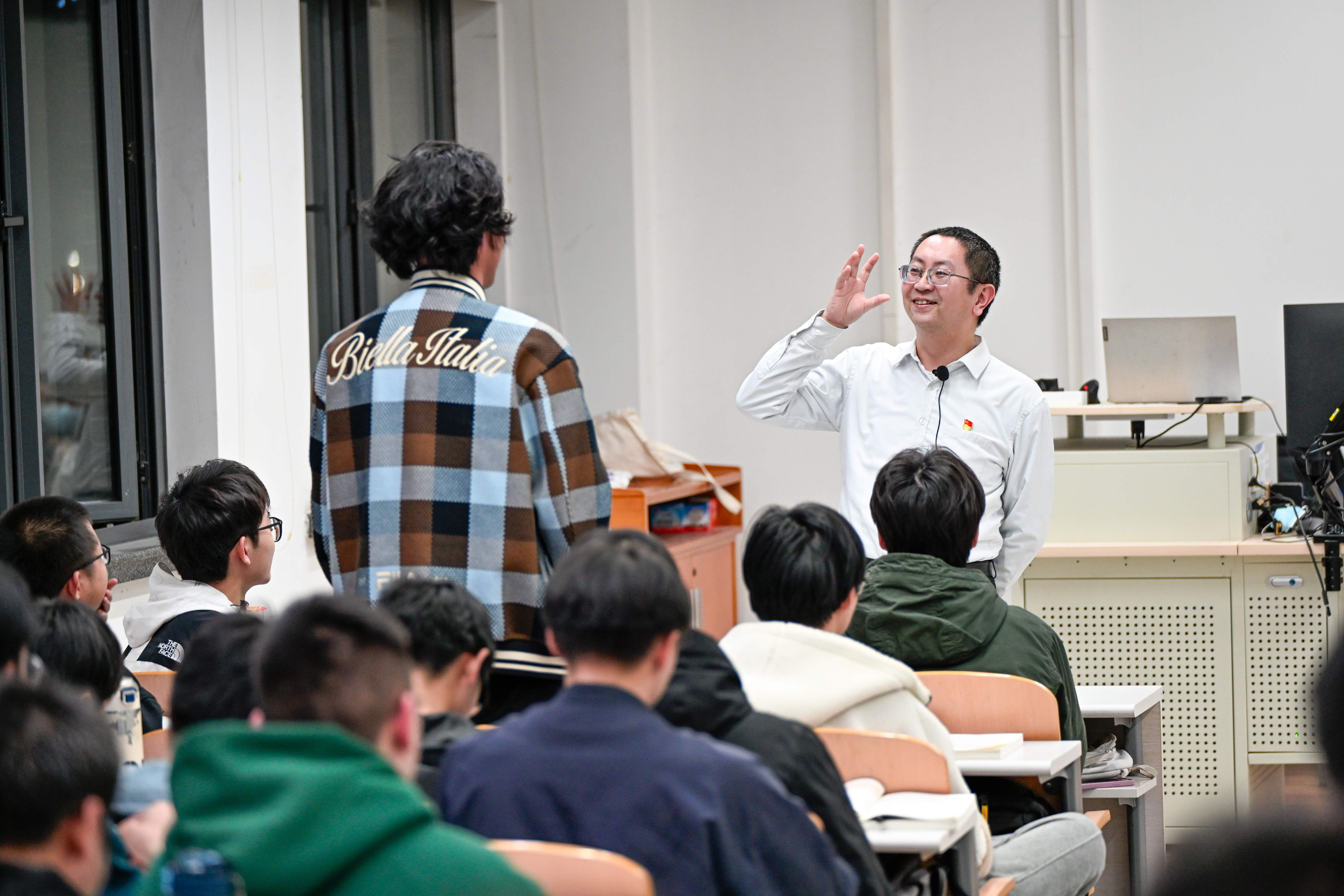 “走下讲台做教师,走出教室讲思政”,是高宁常说的一句话。课堂上,他少有停留在讲台上的时候,而是走到学生身边,讲解、提问、观察。他说,“我想看学生对教学内容的反应。”