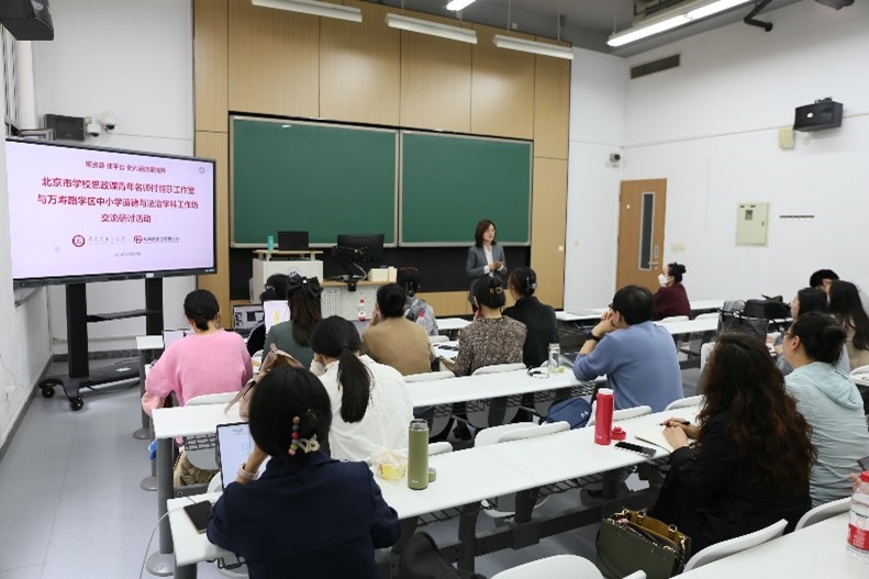 4月27日,海淀区万寿路学区教育教学部刘咏平副部长带领道德与法治学科工作坊的优秀教师赴beat365官网就深化大中小学思想政治教育一体化建设开展交流研讨。此次活动由北京市学校思想政治理论课教师名师工作室负责人付丽莎主持。