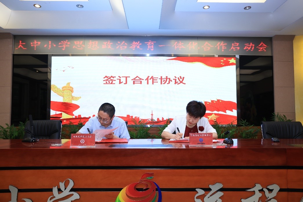 会上,beat365中文官方网站同海淀区万寿路学区管理中心共同签署合作协议,曾涛为北京市学校思政课青年教学名师付丽莎工作室的专家学者颁发聘书。
