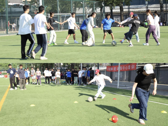 参观结束后,双方移步至北航足球场开展“体育+党建”趣味实践活动。在传球训练、连连看、组队竞赛等环节中,同学们打破学科壁垒,以球会友、协同配合。绿茵场上,欢呼声此起彼伏,既展现了体育精神的拼搏活力,也彰显了党建引领下的团队凝聚力。