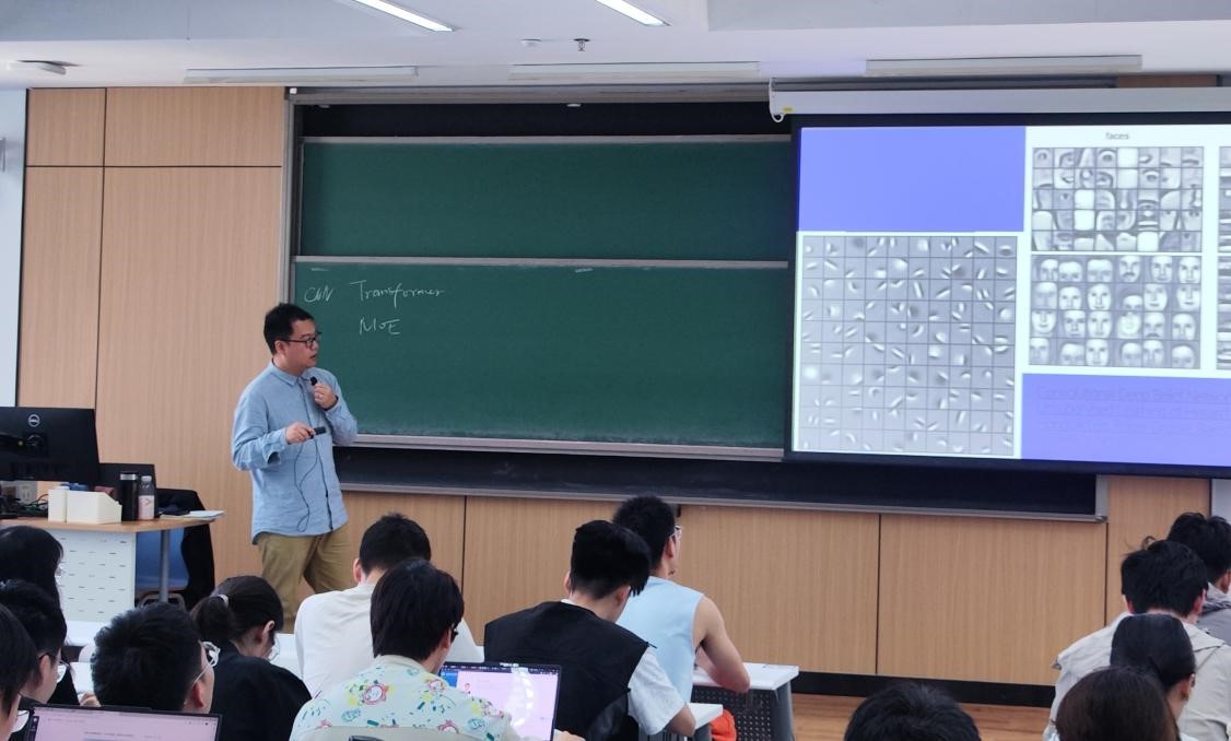 5月14日,beat365中文官方网站人工智能学院王田副教授走进“自然辩证法概论”课堂,受邀讲授“人工智能成像技术的发展脉络及其核心方法”。王田老师以新型大模型引入主题,重点讲解了Transformer架构在自然语言处理与生成中的应用,同时引入混合专家系统(MoE)的模型设计理念,重点介绍了人工智能技术与其他学科的交叉应用。王田老师讲述了分类方法和聚类方法,探讨了深度学习作为“黑盒”模型的特点以及面临的可解释性的挑战,为同学们带来了一场生动的“人工智能方法论”思政课。