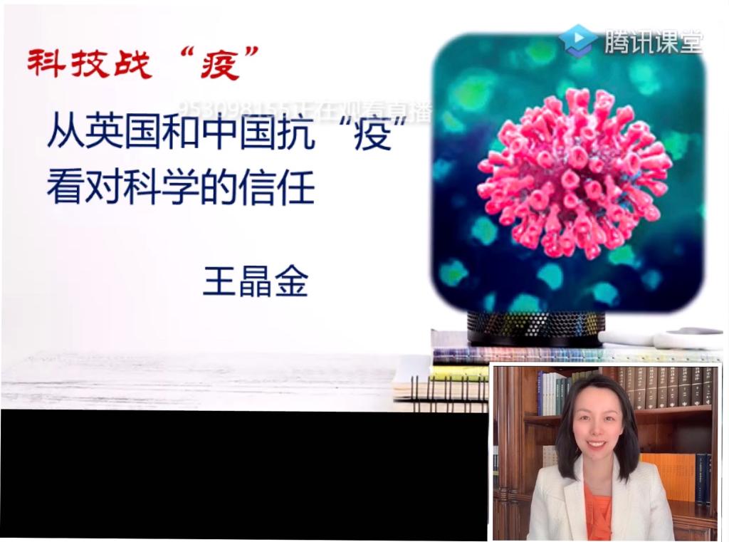 王晶金老师通过梳理中国、英国抗击疫情的国家治理政策,用生动案例和鲜活的一手素材,增强学生对中国特色社会主义道路、理论、制度、文化、科学的思想认同、情感认同和理论认同,展示中国在科技战“疫”中给世界战疫提供的中国智慧和中国方案。课程分为集中授课与讨论两个环节,使用腾讯课堂和腾讯会议两个平台,在讨论环节,同学们纷纷积极“举手”并“上台”回答,踊跃参与分享了自己对中国和英国抗“疫”的认识,以及对中国抗击疫情和科学的思考与想法。在课程结尾,王晶金告诉同学们,作为未来的科研工作者和工程师应明确科学的目标,承担好科学工作者的责任,让科学更好服务于人,更好服务国家。