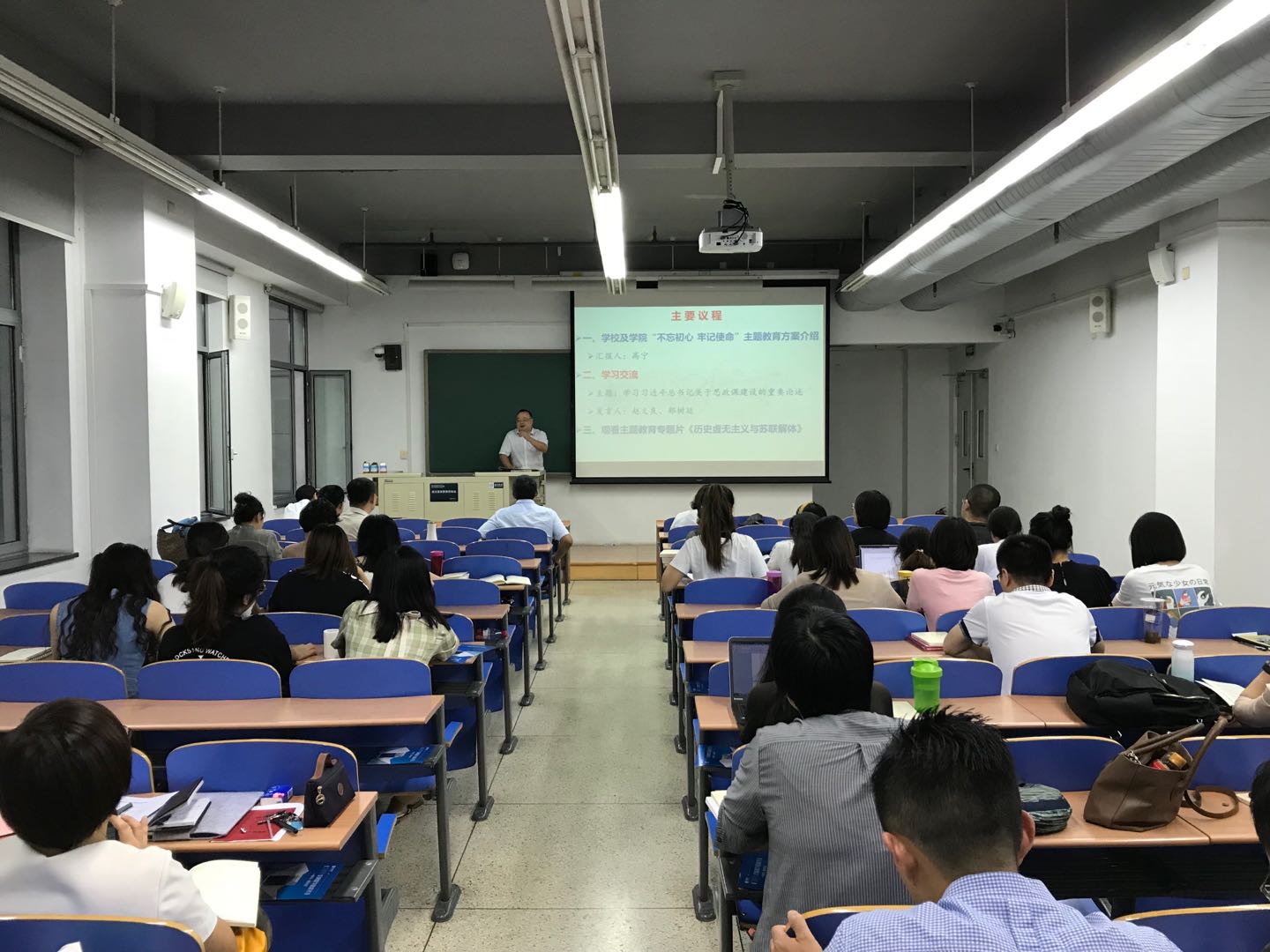 活动第一项议程由学院直属党支部书记高宁介绍了学校及学院“不忘初心、牢记使命”主题教育方案。高宁重点强调了主题教育将理论学习和调研紧密结合、在联系实际中检视问题、加强整改总结反思的各个环节和具体安排。