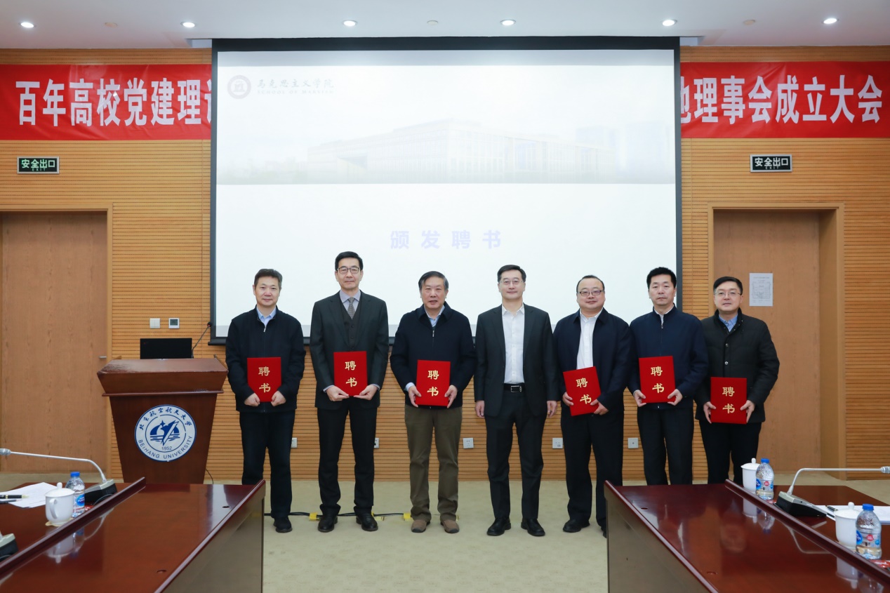 在理事会成立环节,王云鹏副校长向新一届基地理事会、学术委员会成员代表颁发聘书并致辞。他在致辞中表示,高校党建是中国共产党百年历史的重要篇章,党的十九届六中全会深刻总结了中国共产党百年来取得的重大成就、形成的宝贵经验,对于做好新时代高校党建理论与实践研究具有重要指导意义。他指出,首都高校党建研究基地未来应以高水平研究为基础,高标准推进基地建设;坚持首善标准,突出首都特色;更好发挥理事会和学术委员会把关指导作用,努力建设具有北航特色的首都高校新型智库。